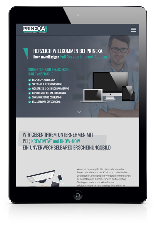 PRINEXA positioniert Ihr Business, zielorientiert und professionell mit allen Mitteln der modernen Kommunikation an die gewünschte Stelle. Dabei ist Ihr Erfolg unser Auftrag und oberste Priorität, denn auch wir stellen hohe Ansprüche an uns selbst. Wir führen Sie in die Technologien der „NEUEN MEDIEN“, machen Sie damit vertraut und verknüpfen Sie mit der ON sowie OFFLINE Welt.